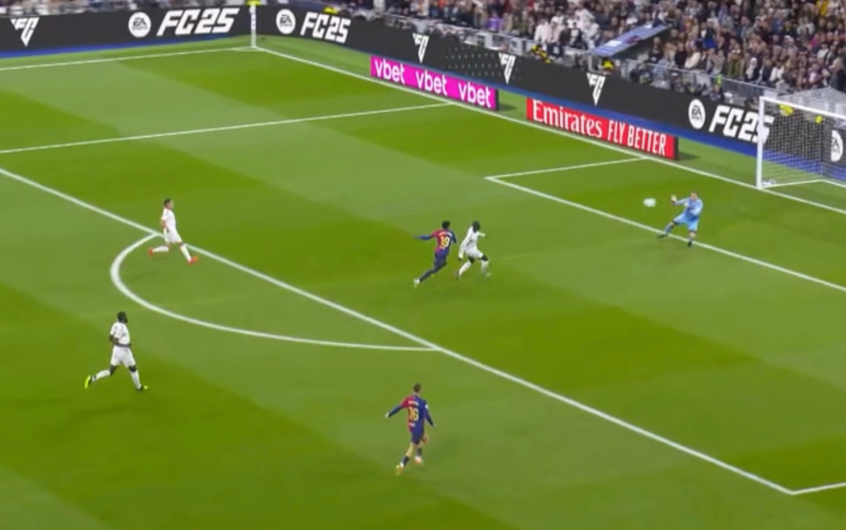 Спочатку Андрій Лунін зумів без проблем зупинити вихід 1 на 1 проти Ламіна Ямаля, впевнено зловивши м'яч після перекидки іспанця.