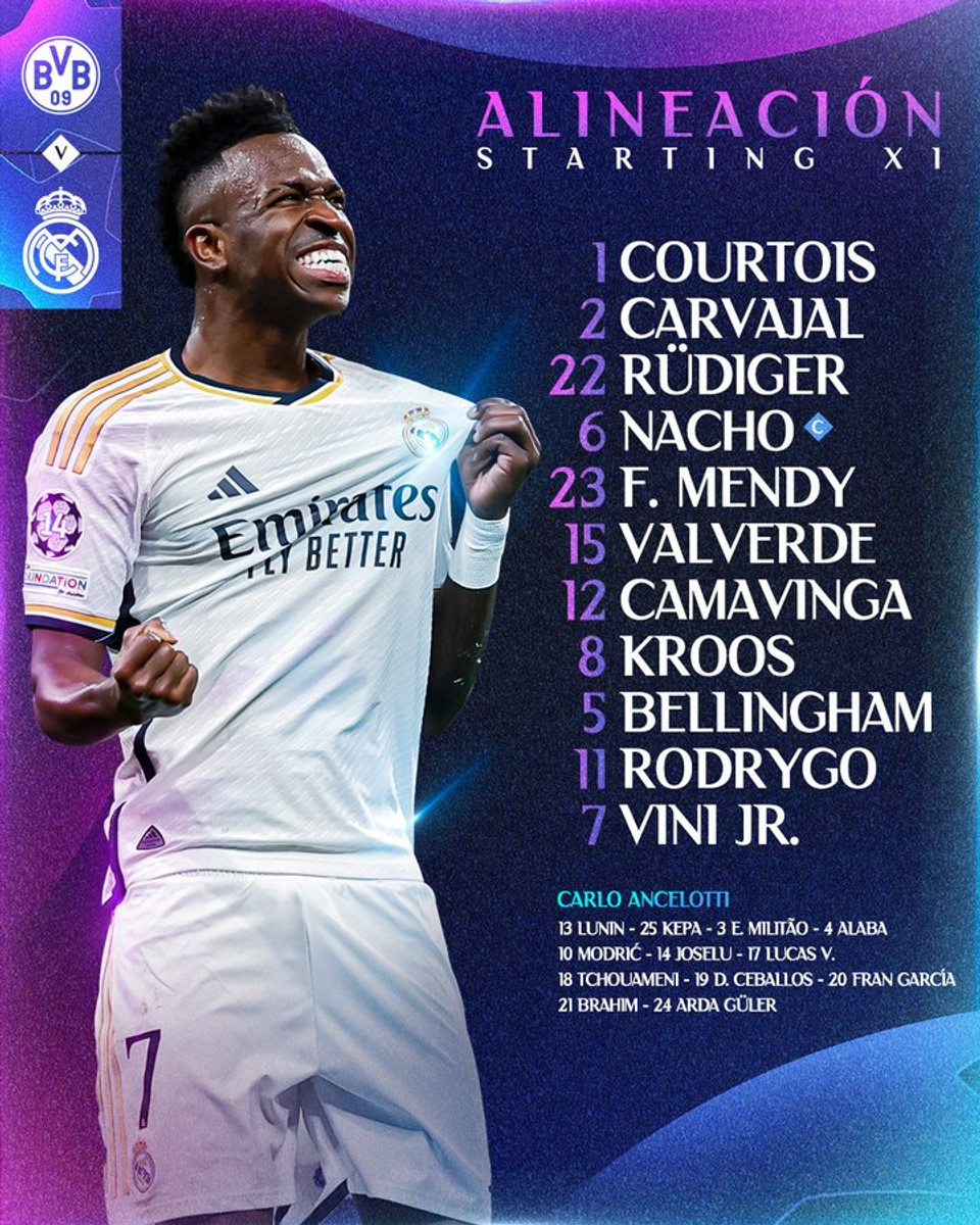 Мадридський Реал оголосив стартовий склад на фінал Ліги чемпіонів проти Боруссії Дортмунд.