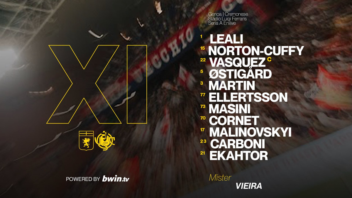 Український півзахисник Руслан Малиновський потрапив до стартового складу Дженоа на матч 9 туру італійської Серії А проти Кремонезе.