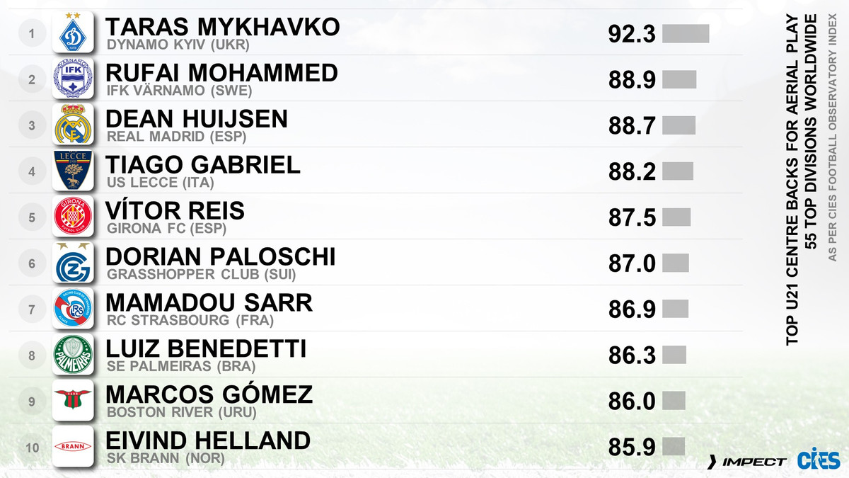 Зазначається, що показник українського футболіста сягає 92,3%. На другому місці опинився Руфаї Мохаммед з Варнамо (чемпіонат Швеції), у якого 88,9%, а трійку замкнув талановитий центрбек Реала Дін Гейсен (88,7%).