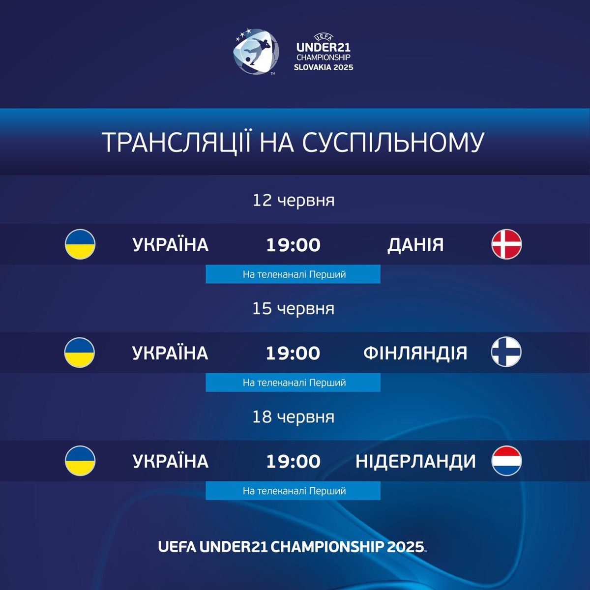 Зокрема, трансляцію матчів забезпечуватиме телеканал Перший, який покаже всі матчі молодіжки на груповому етапі. До слова, кожен з поєдинків стартує о 19:00.