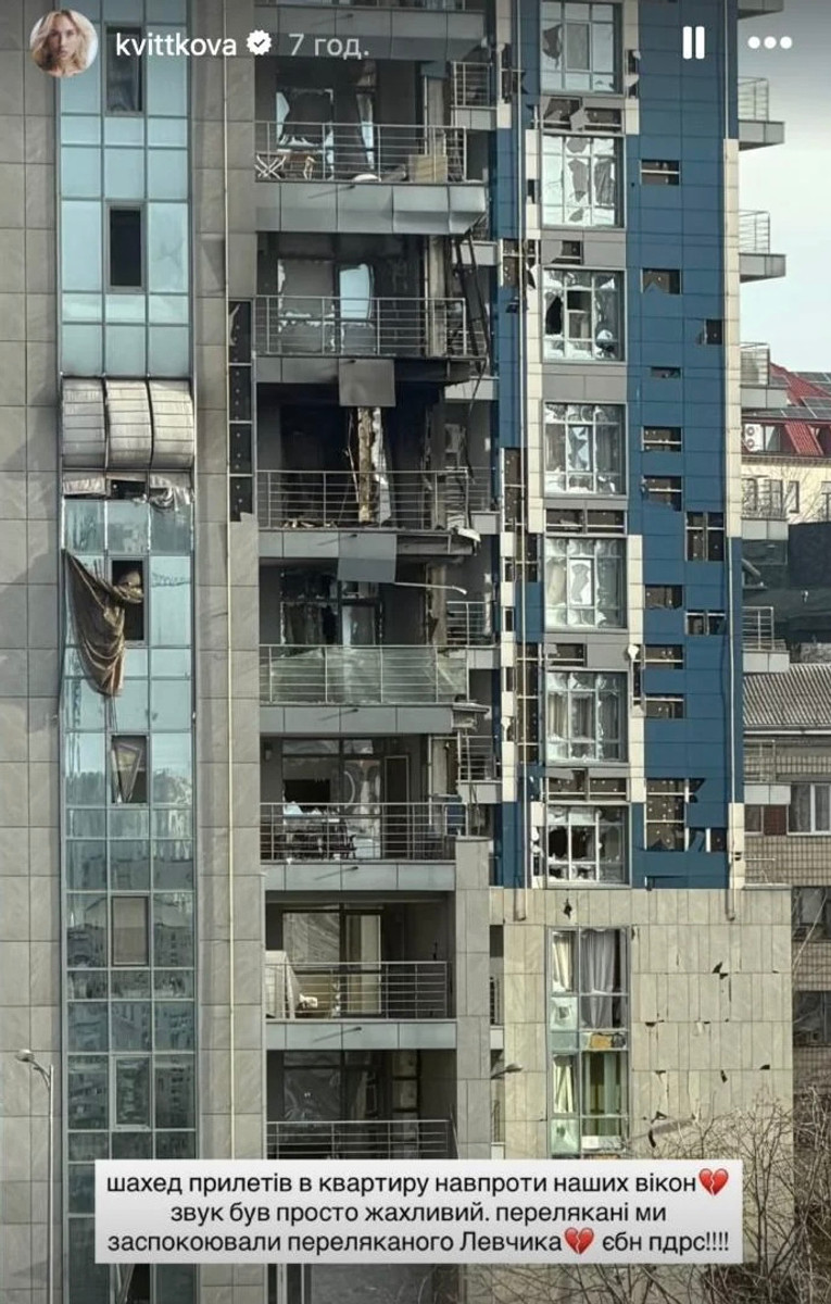 Шахед прилетів у квартиру навпроти: наречена лідера Динамо показала наслідки нічної атаки на Київ