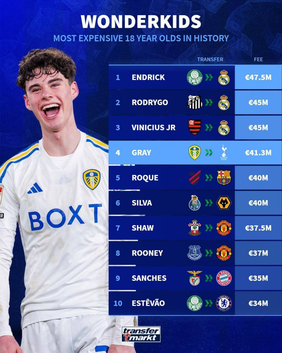 Трансфер англійського півзахисника Арчі Грея у Тоттенгем став одним із найдорожчих в історії футболу серед гравців до 18 років.