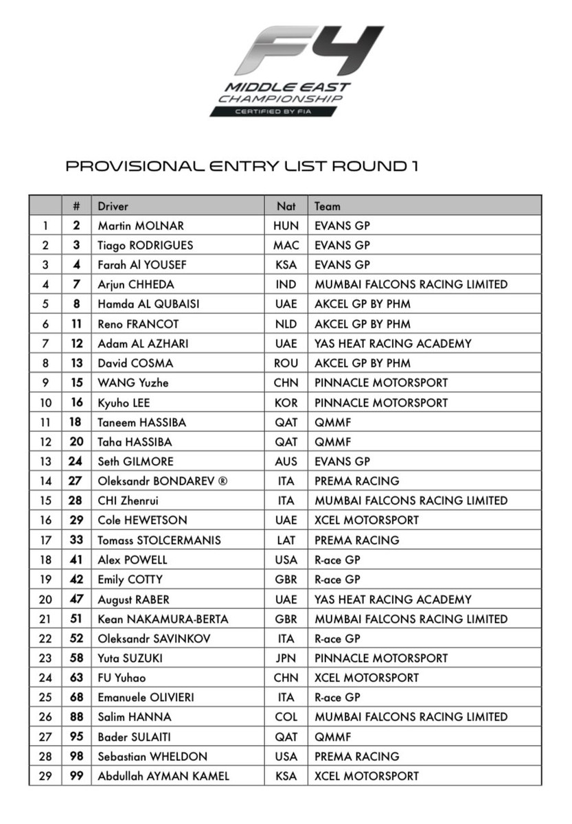 Свої перші кроки у повноцінному сезоні в Ф-4 зробить 15-річний український гонщик Олександр Бондарев, що виступатиме за команду Prema Racing.