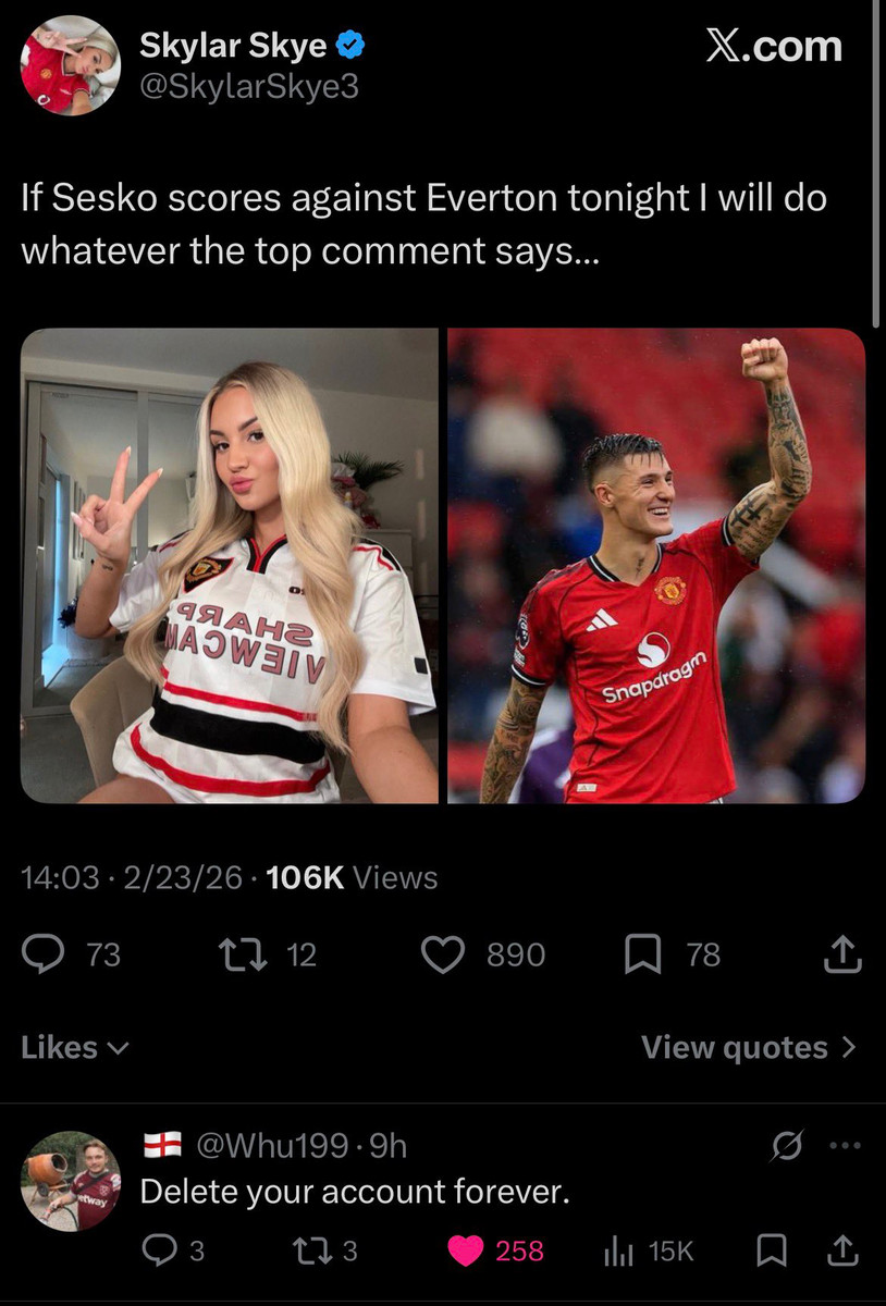 Після того як словенець таки забив, користувачі миттєво згадали про її слова. Найбільше вподобань під дописом моделі набрав коментар фаната МЮ, який попросив дівчину видалити свій акаунт.