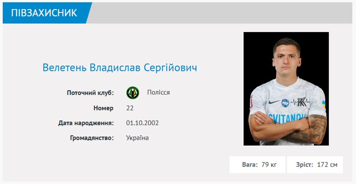 До цього Велетень виступав з 2021 року за Колос. У минулому сезоні за ковалівську команду він провів 27 матчів, забив 4 голи та віддав 5 асистів.