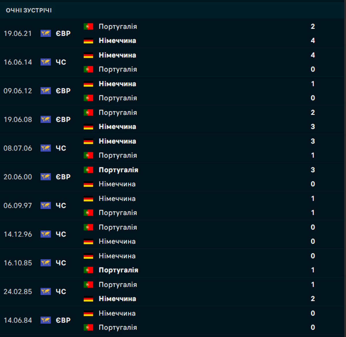 Більше того, для Португалії це перша перемога на території Німеччини з 1985 року. В межах відбору на чемпіонат світу-1986 португальці здобули мінімальну перемогу з рахунком 1:0, а єдиним голом відзначився Карлуш Мануел.