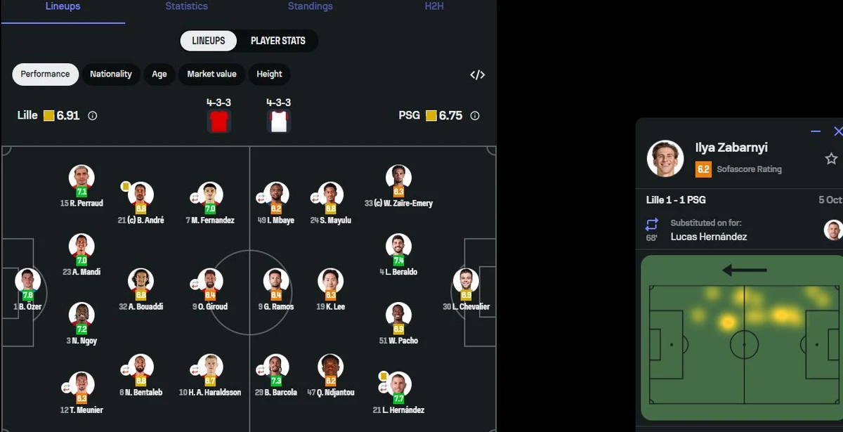 Український захисник ПСЖ Ілля Забарний отримав незадовільну оцінку за зіграний матч проти Лілля в межах 7-го туру Ліги 1.