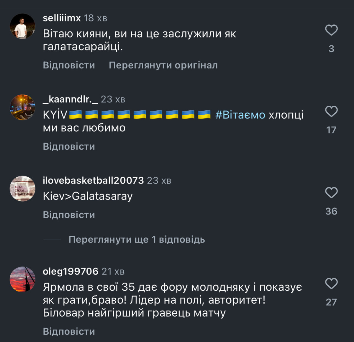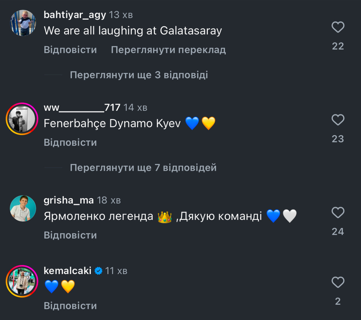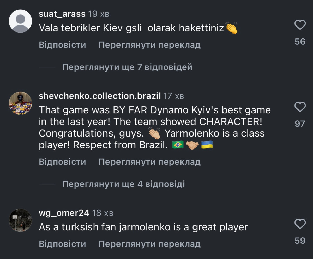 Найбільша несподіванка – респект від турецьких вболівальників. Точно не можна сказати, чи то фанати Галатасарая, чи їх хейтери, але вони написали багато теплих слів про виступ Динамо, а також залишили чимало коментарів із підтримкою українського народа.