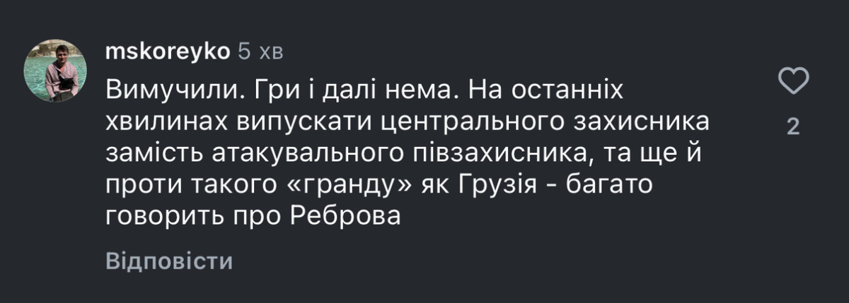 Наші фани були у захваті від гри Михайла Мудрика та дебюту Івана Калюжного. Звісно ж, були і погані моменти, наприклад, відгук на незарахований гол Грузії через офсайд. Наші футболісти втратили концентрацію.