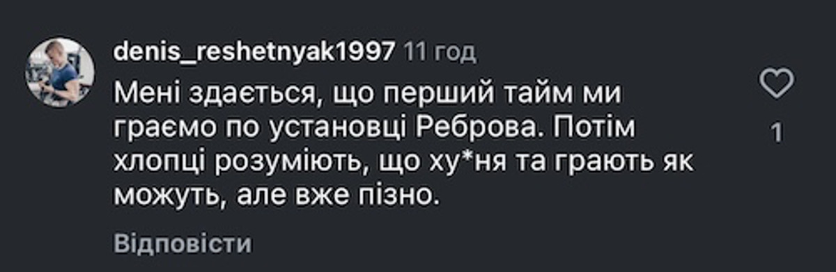 Ми всі хочемо бачити результат одразу, коли збірна отримує нового тренера, тим паче Реброва вважали ледь не месією. Він неодноразово вигравав чемпіонати з клубами, а заради національної команди поїхав із Саудівської Аравії. Але нам всім варто зрозуміти, що не може бути все й одразу, час тут вирішує більше, що дратує кожного. Бо скільки можна?