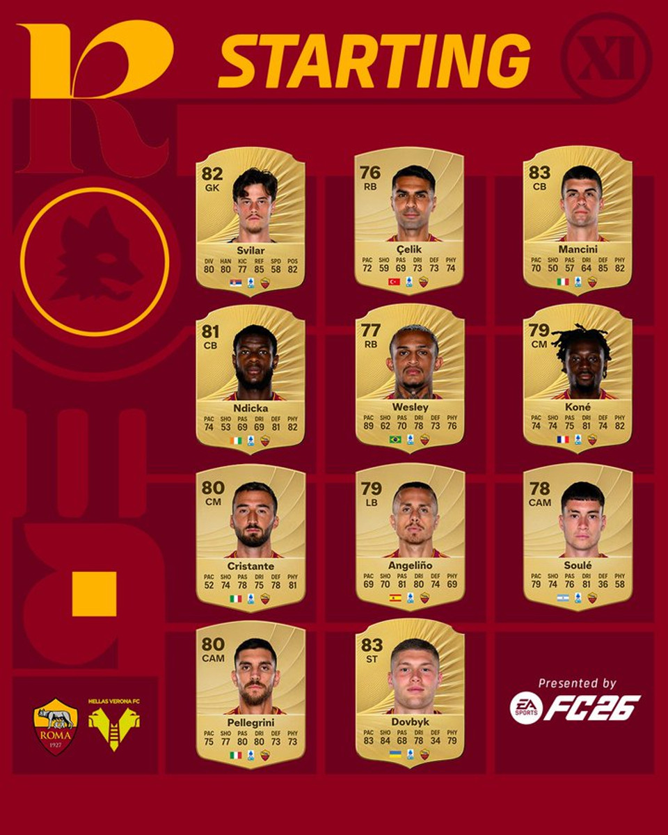 Український нападник Роми Артем Довбик вийде у стартовому складі команди на матч 5 туру італійської Серії А проти Верони.
