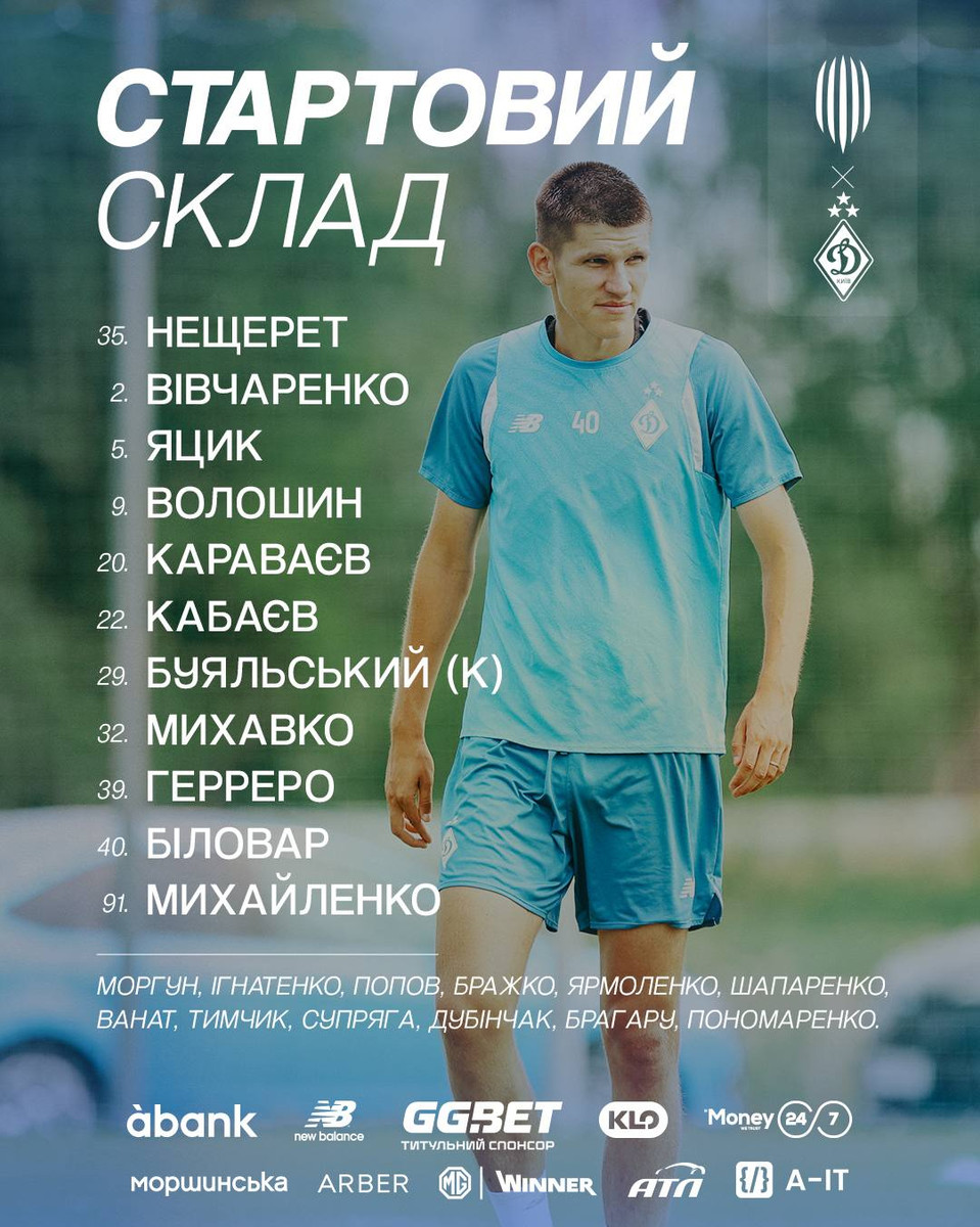 Динамо: Нещерет, Вівчаренко, Яцик, Волошин, Караваєв, Кабаєв, Буяльський, Михавко, Герреро, Біловар, Михайленко