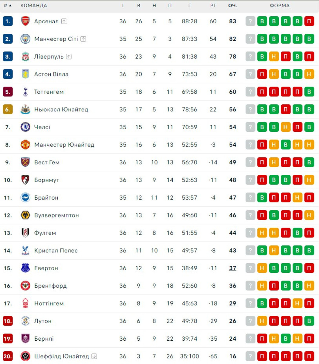 Турнірна таблиця