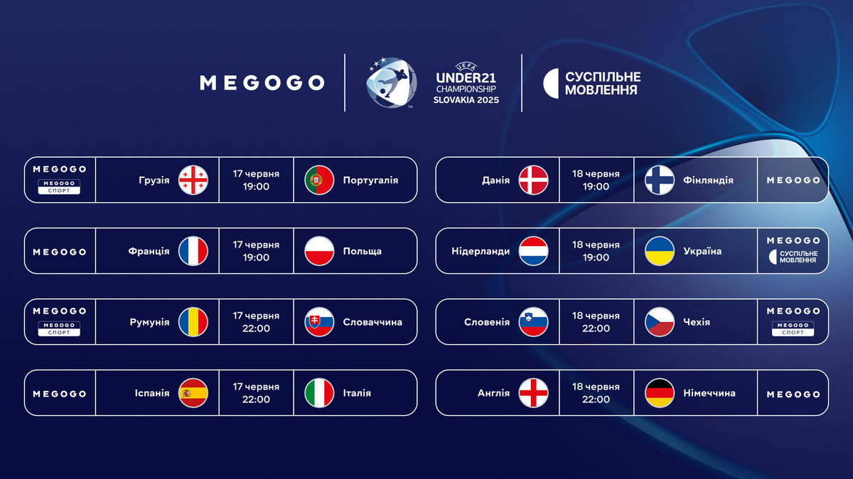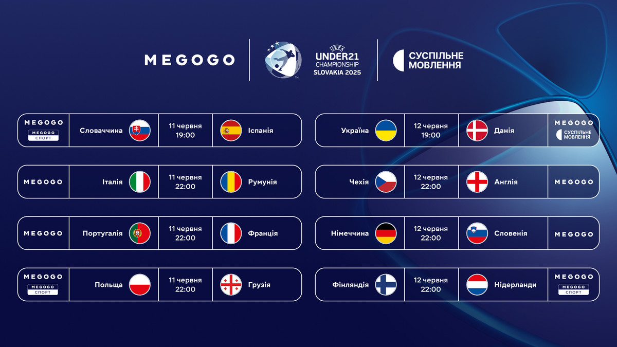 Медіасервіс MEGOGO буде офіційним телетранслятором молодіжного Євро-2025 (U-21) на території України. Всі поєдинки турніру компанія покаже на власній ОТТ-платформі.
