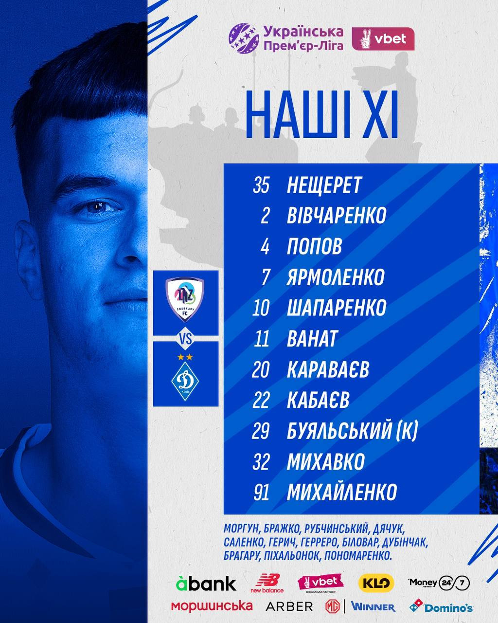 Запасні: Моргун, Дубінчак, Біловар, Дячук, Герич, Рубчинський, Бражко, Саленко, Піхальонок, Брагару, Герреро, Пономаренко