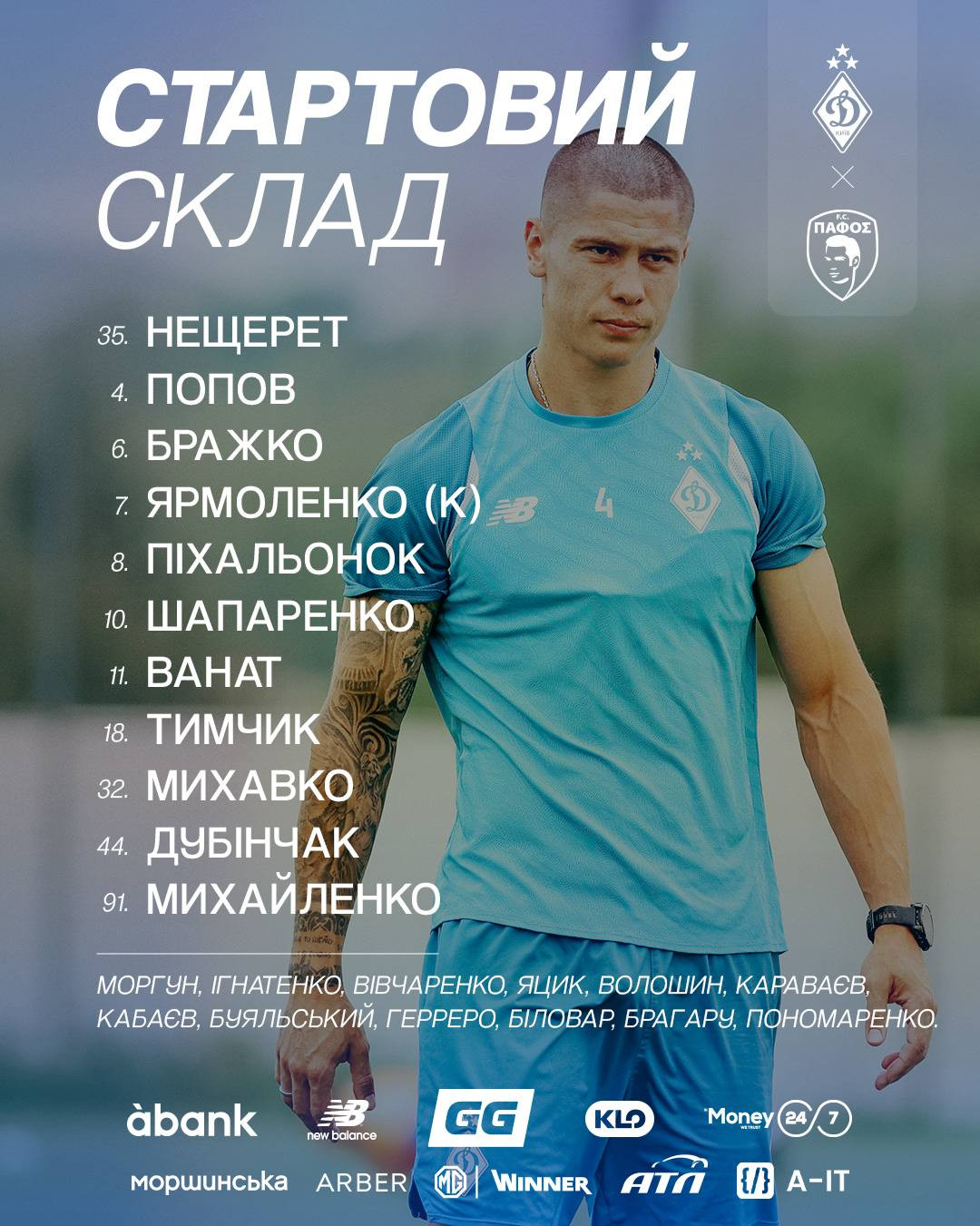 Нагадаємо, матч-відповідь між Динамо та кіпрським Пафосом відбудеться 12 серпня.