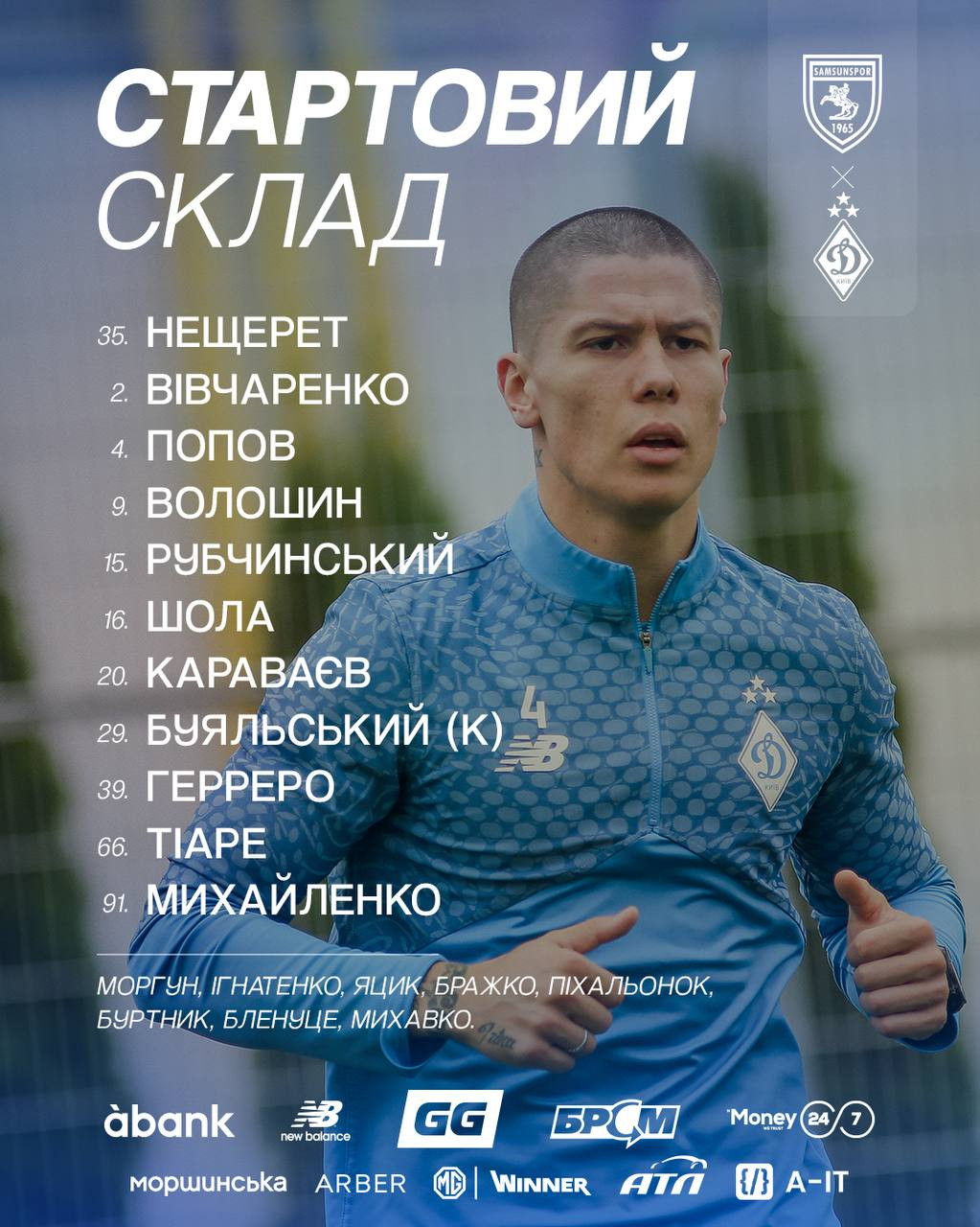 Тренерський штаб київського Динамо визначився зі стартовим складом на матч проти турецького Самсунспора у другому турі Ліги конференцій УЄФА.