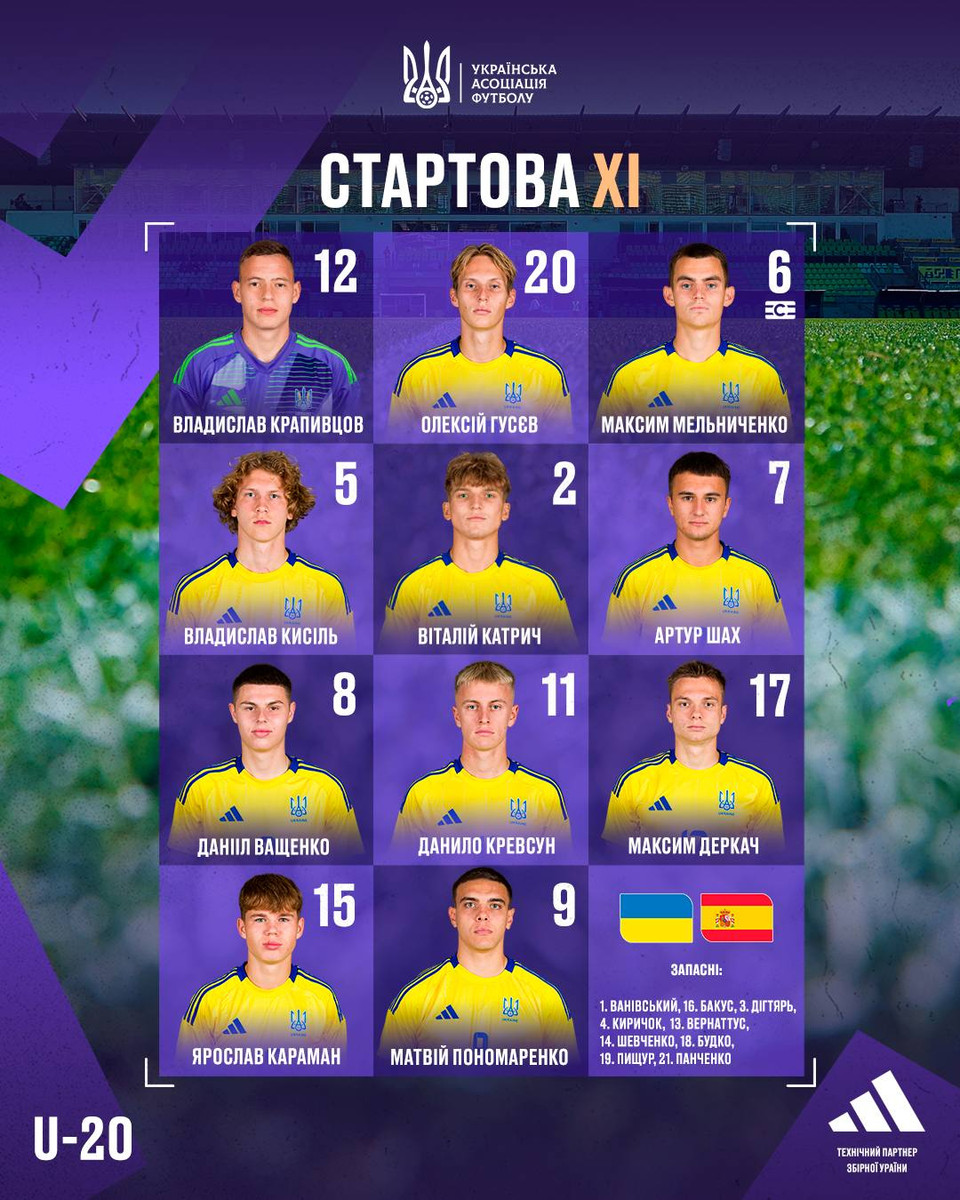 Збірна України U-20 назвала склад на матч з Іспанією у плейоф ЧС-2025