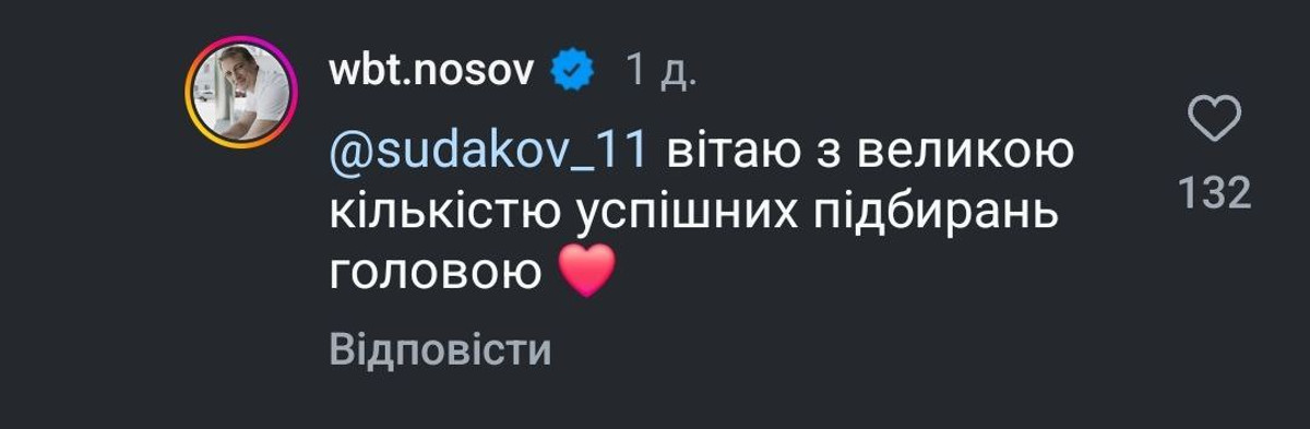 Провокативний пост гравця Шахтаря не залишився поза увагою президента Металіста 1925 Володимира Носова. Він відповів Судакову, написавши "Вітаю з великою кількістю успішних підбирань головою".