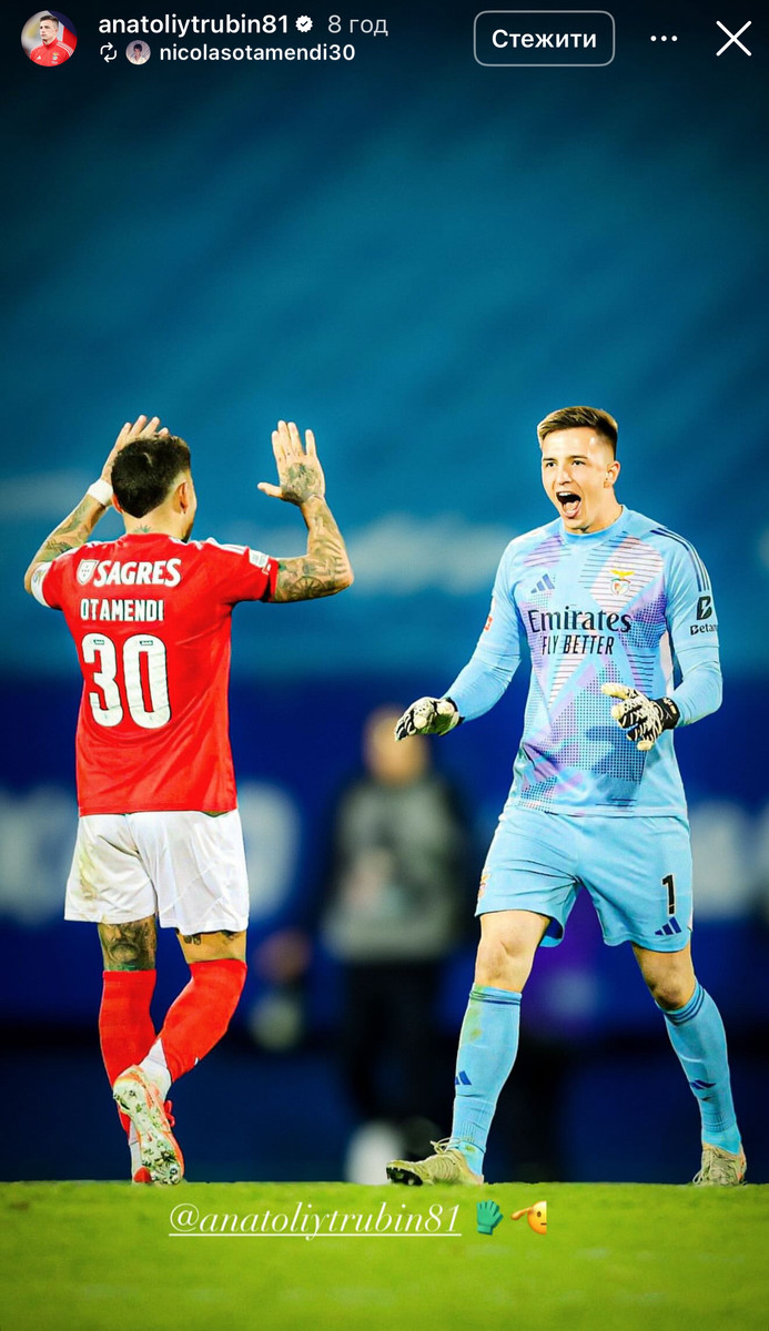 Капітан Бенфіки Ніколас Отаменді відзначив у соцмережах виступ одноклубника Анатолія Трубіна у матчі проти Ешторіла.