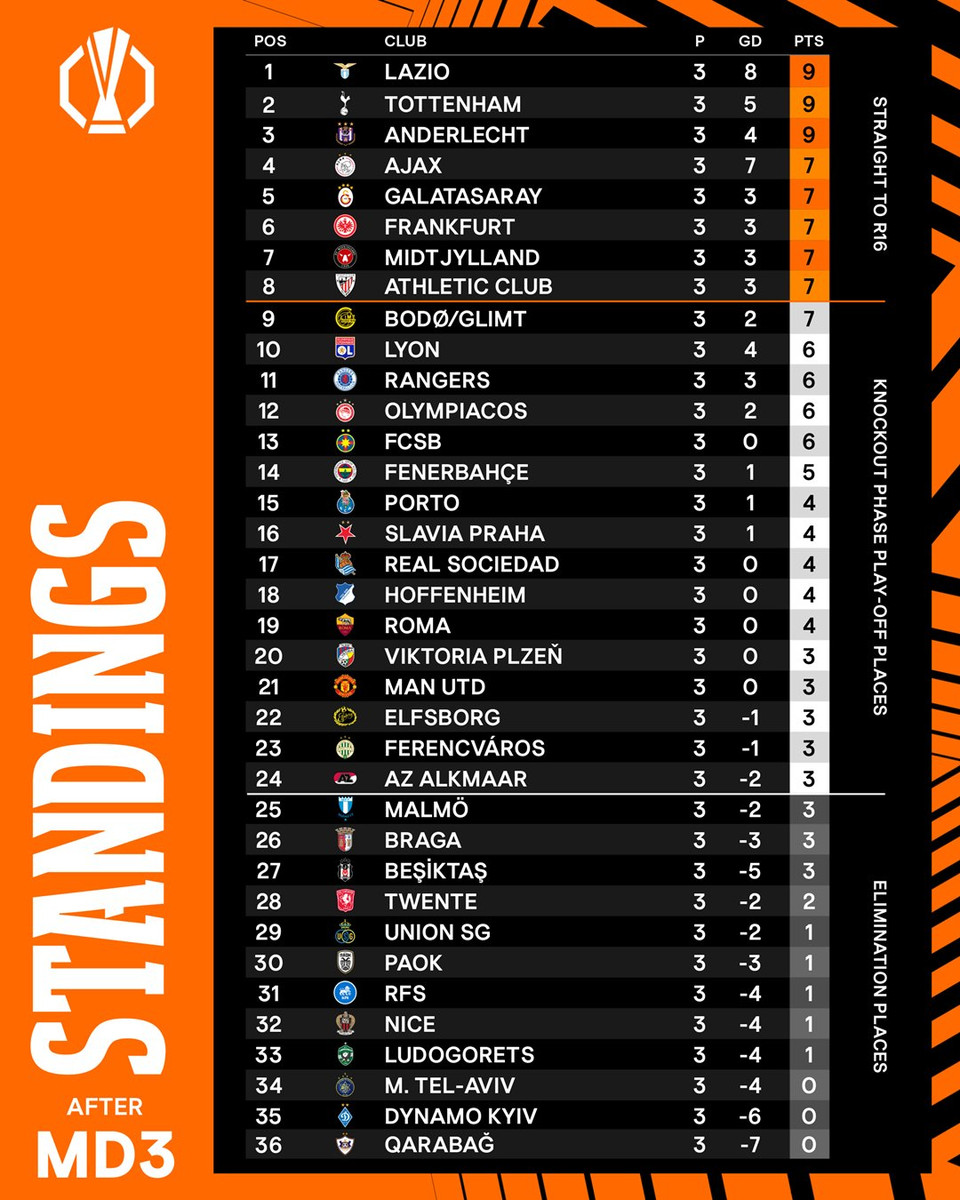 Лідером турнірної таблиці є римський Лаціо. "Орли" у першому турі розгромили Динамо (3:0), у другому розібралися з Ніццою (4:1), а у третьому переграли нідерландський Твенте (2:0).