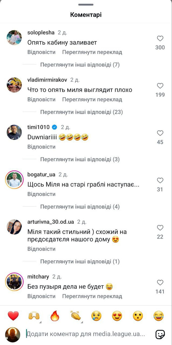 Мілевського такий фідбек неабияк розлютив – він почав різко реагувати на критику в коментарях та сторіз у властивій собі собі манері.