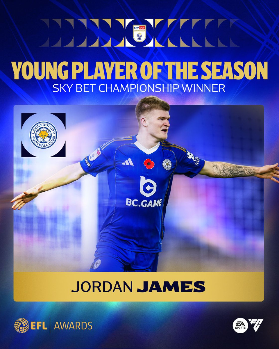 Джордан Джеймс з Лестер Сіті отримав нагороду "найкращий молодий гравець сезону чемпіонату". В активі 21-річного футболіста 10 голів та 4 результативні передачі.