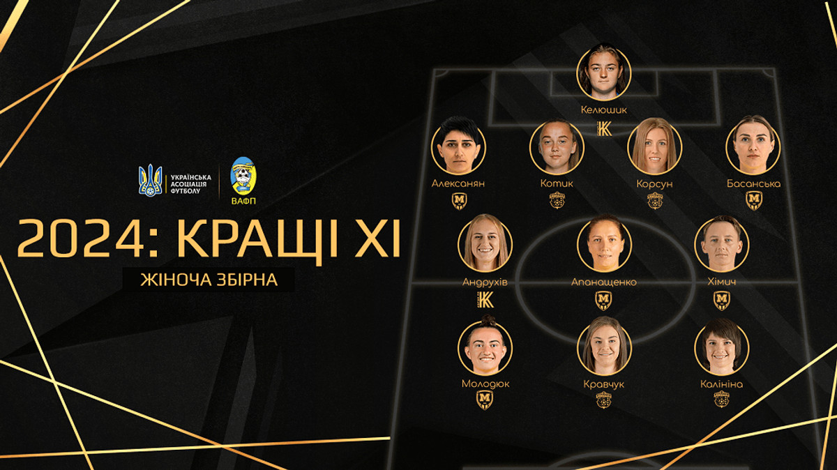 Українська асоціація футболу (УАФ) назвала символічні чоловічі та жіночі збірні 2024 року за результатами голосування Всеукраїнської асоціації футболістів-професіоналів.