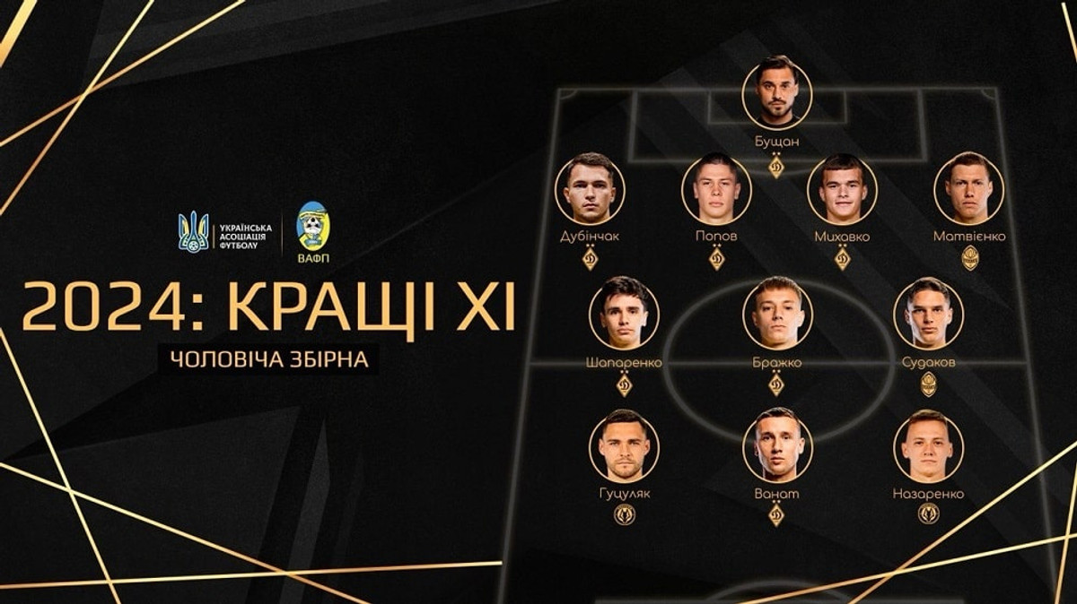 УАФ назвала символічну збірну найкращих футболістів України 2024 року