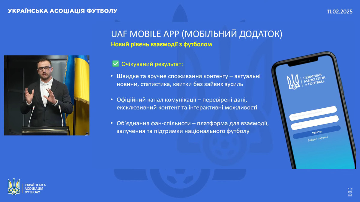 УАФ очікує, що UAF Mobile App принесе швидке та зручне споживання контенту: актуальні новини, статистика, купівля квитків без зайвих зусиль.