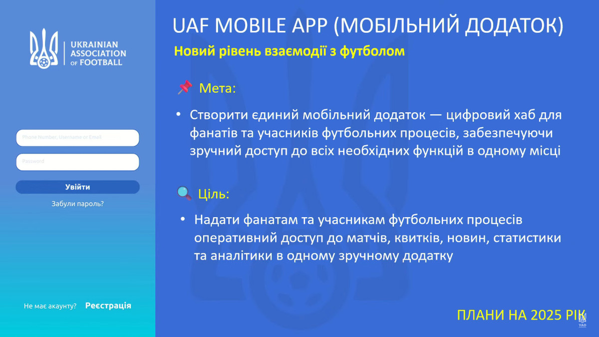 У 2025 році УАФ хоче сторити "цифровий хаб для фанатів та учасників футбольних процесів". За мету поставили забезпечення зручного доступу до всіх необхідних функцій в одному місці.