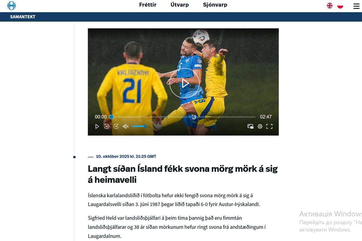 "Давно чоловіча збірна Ісландії з футболу не пропускала так багато голів на своєму полі. Ісландці не пропускали так багато голів на стадіоні "Лаугардалсвелл" із 3 червня 1987 року, коли команда програла Східній Німеччині (НДР) з рахунком 0:6.