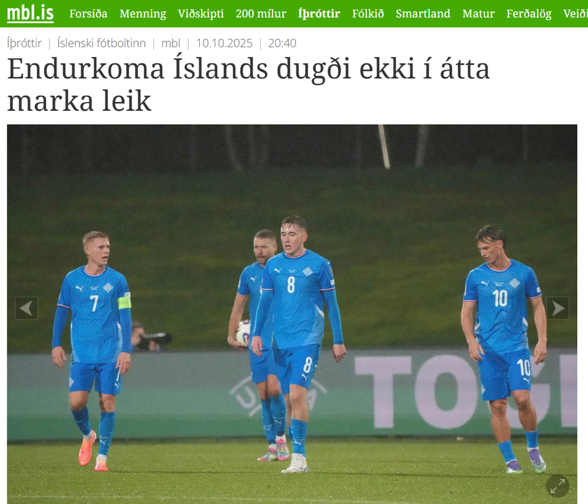 На додачу Morgunblaðið стримано підбив підсумок: "Гравці збірної Ісландії двічі зрівнювали рахунок, але пропустили вирішальні голи".