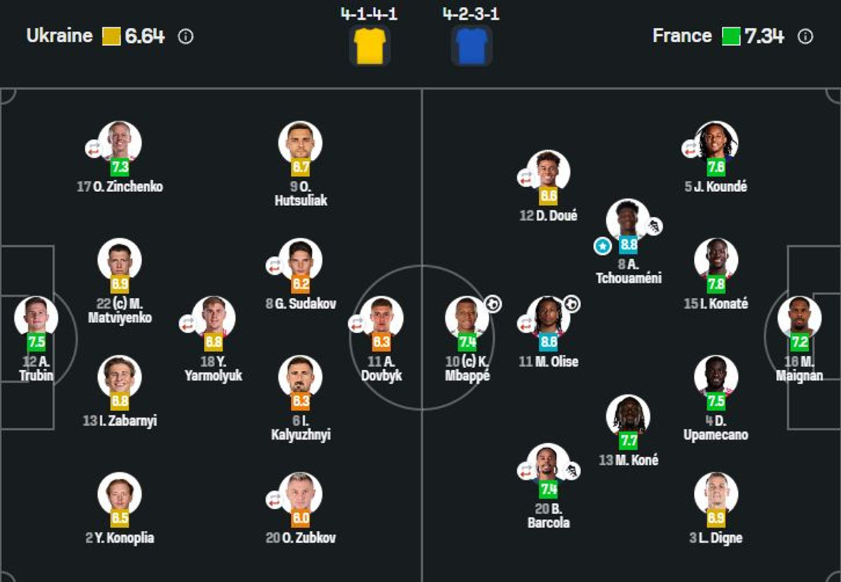 Голкіпер збірної України Анатолій Трубін був визнаний найкращим гравцем у складі "синьо-жовтих" у матчі проти Франції в межах відбору на чемпіонат світу-2026.
