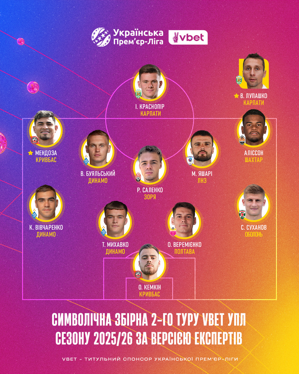 Українська Прем’єр-Ліга склала символічну збірну, назвала найкращого гравця та найкращого тренера 2 туру.
