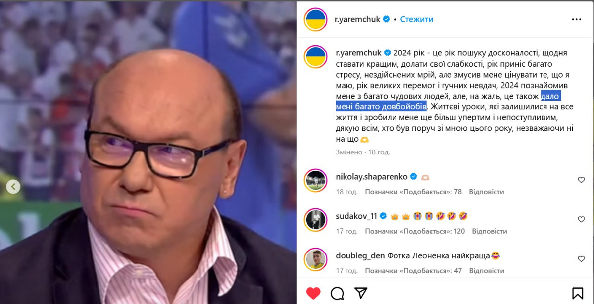 Яремчук у пості підбив підсумки 2024 року, де серед іншого написав, що 2024 рік дай йому багато дов*****ів, та серед світлин додав фото Леоненка.