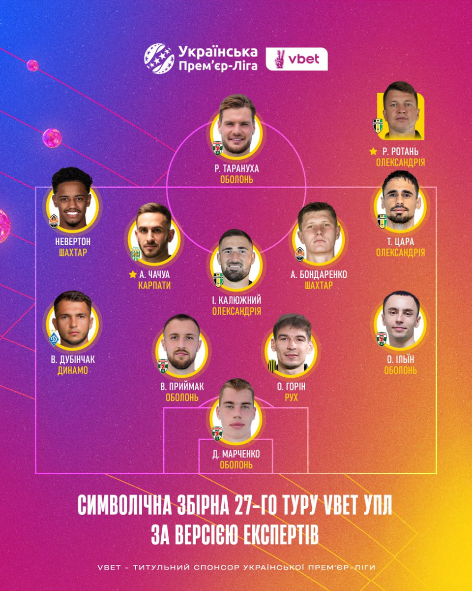 Ведучи та експерти Прем'єр-ліги оголосили склад символічної збірної 27 туру чемпіонату України.