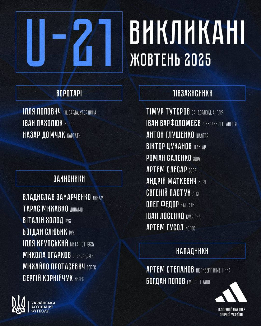 Україна U-21 оголосила заявку на матчі з Угорщиною та Хорватією у відборі Євро-2027
