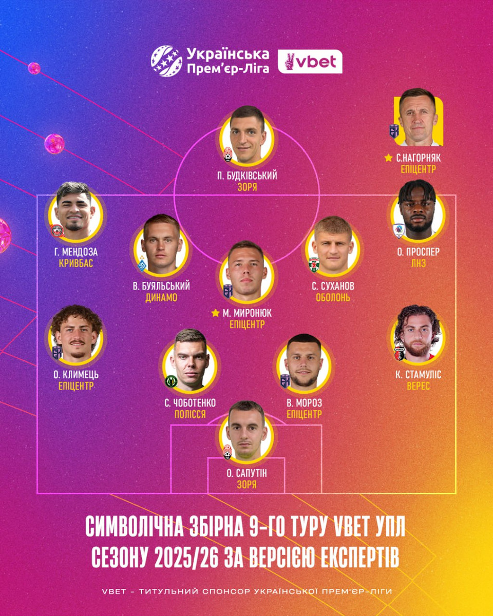Визначились найкращі гравець, тренер та символічна збірна 9-го туру УПЛ