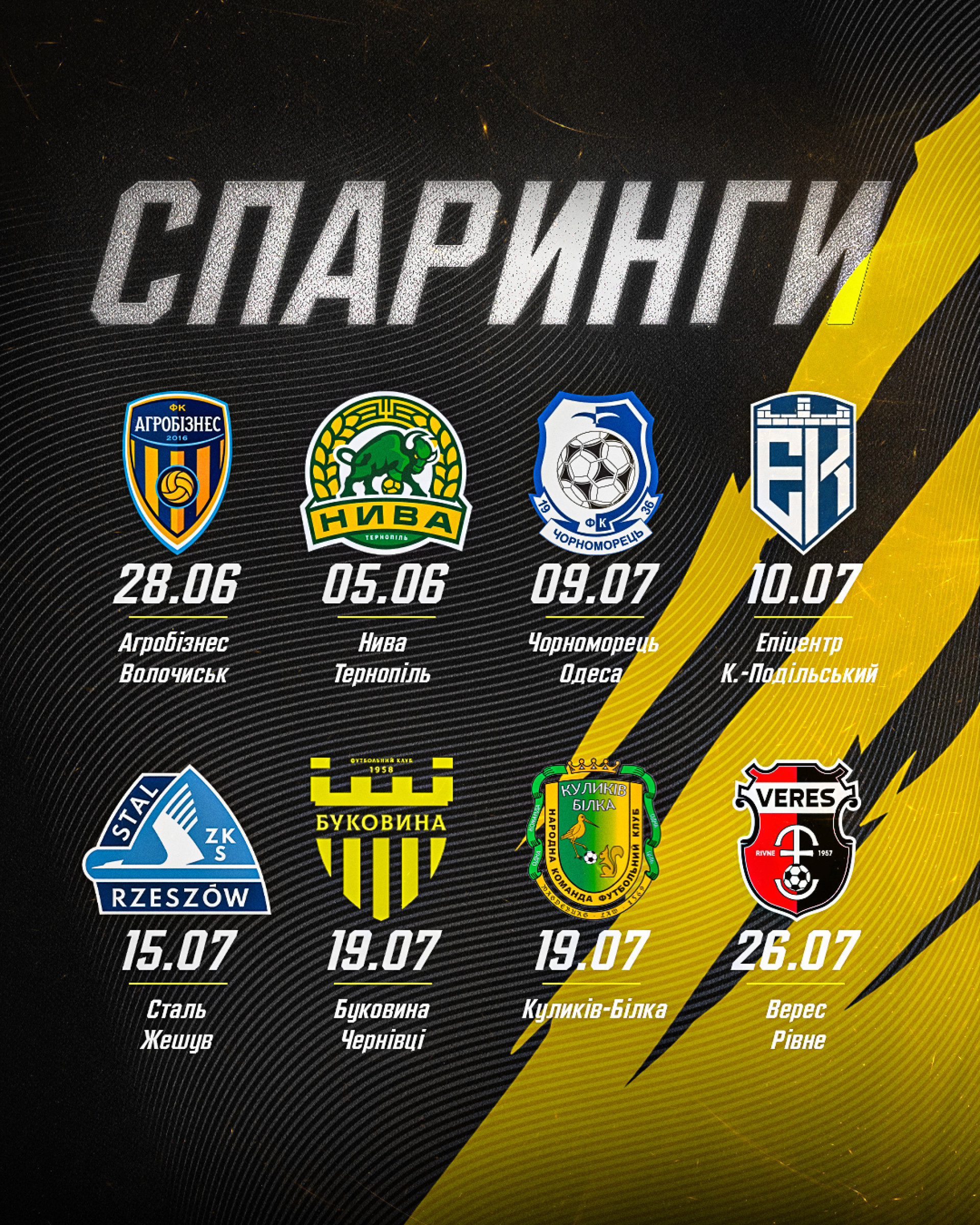 Команда розпочне підготовку до сезону 23 червня, а уже за 5 днів проведе свій перший спаринг. 7 із 8 суперників Руха – українські клуби. Єдиний закордонний спаринг-партнер – польська Сталь із Жешува.