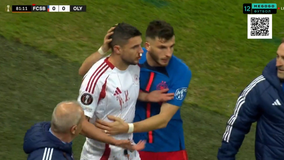 Український нападник Олімпіакоса Роман Яремчук зазнав жорсткої травми голови через півтори хвилини після виходу на заміну в матчі 5 туру Ліги Європи проти Стяуа.