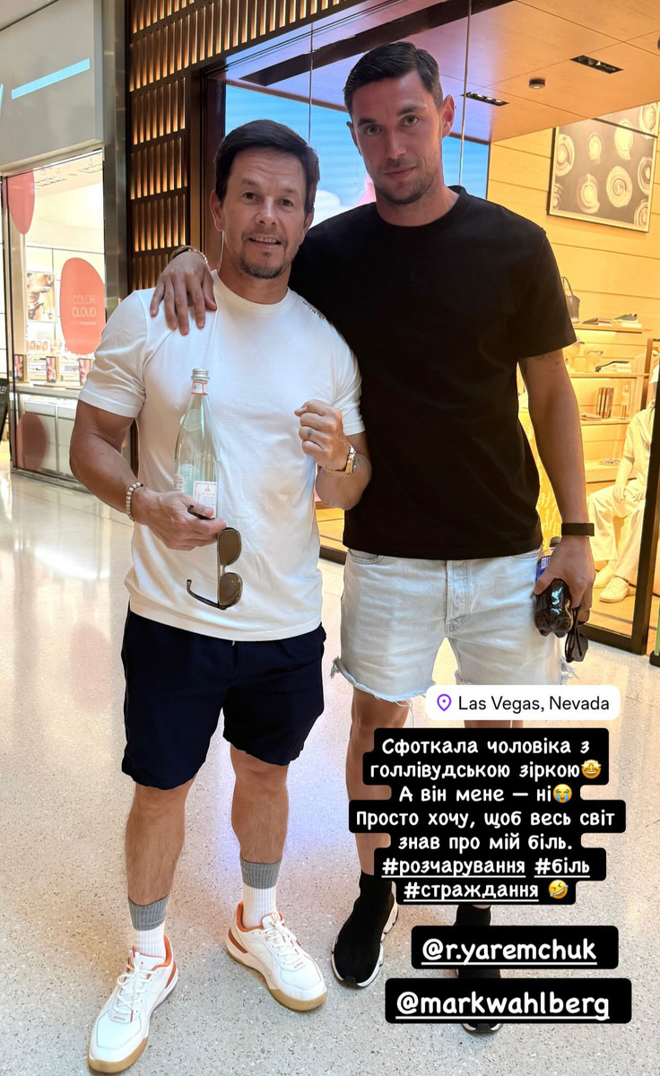 Дружина футболіста Христина опублікувала в Instagram фото, на якому футболіст позує разом із голлівудським актором Марком Волбергом. Проте на знімку відсутня вона сама.
