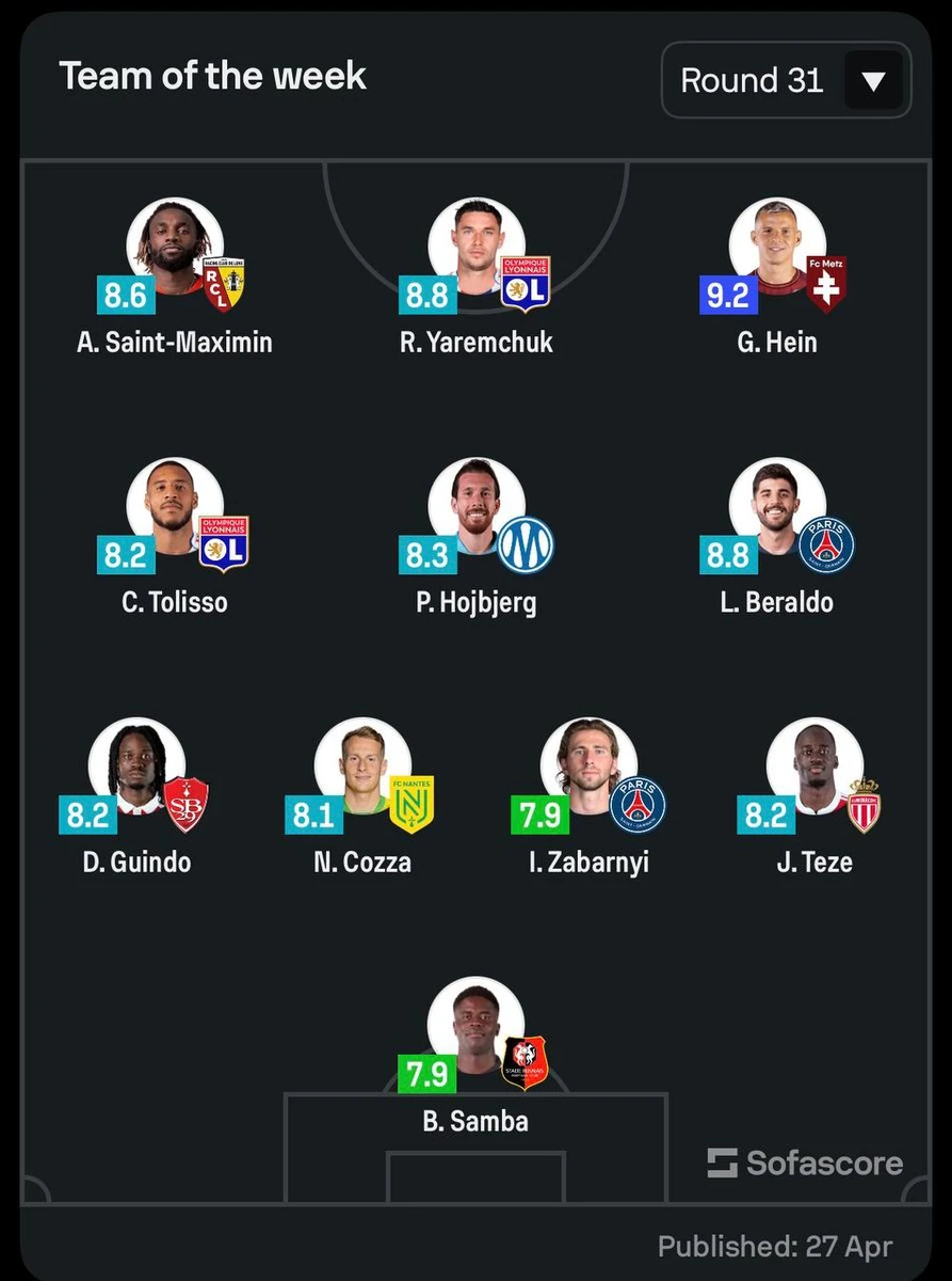 Футболісти збірної України Ілля Забарний і Роман Яремчук потрапили до символічної збірної 31-го туру чемпіонату Франції за версіями кількох порталів.