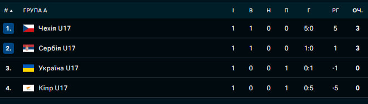 Наразі Україна посідає 3 місце в групі А зі збірними Чехії, Сербії та Кіпру. У першому турі "синьо-жовті" поступились сербам (0:1). Зі свого боку чехи йдуть першими після розгрому над господарями змагання. Зазначимо, що до плей-оф вийдуть дві найкращі команди квартету.