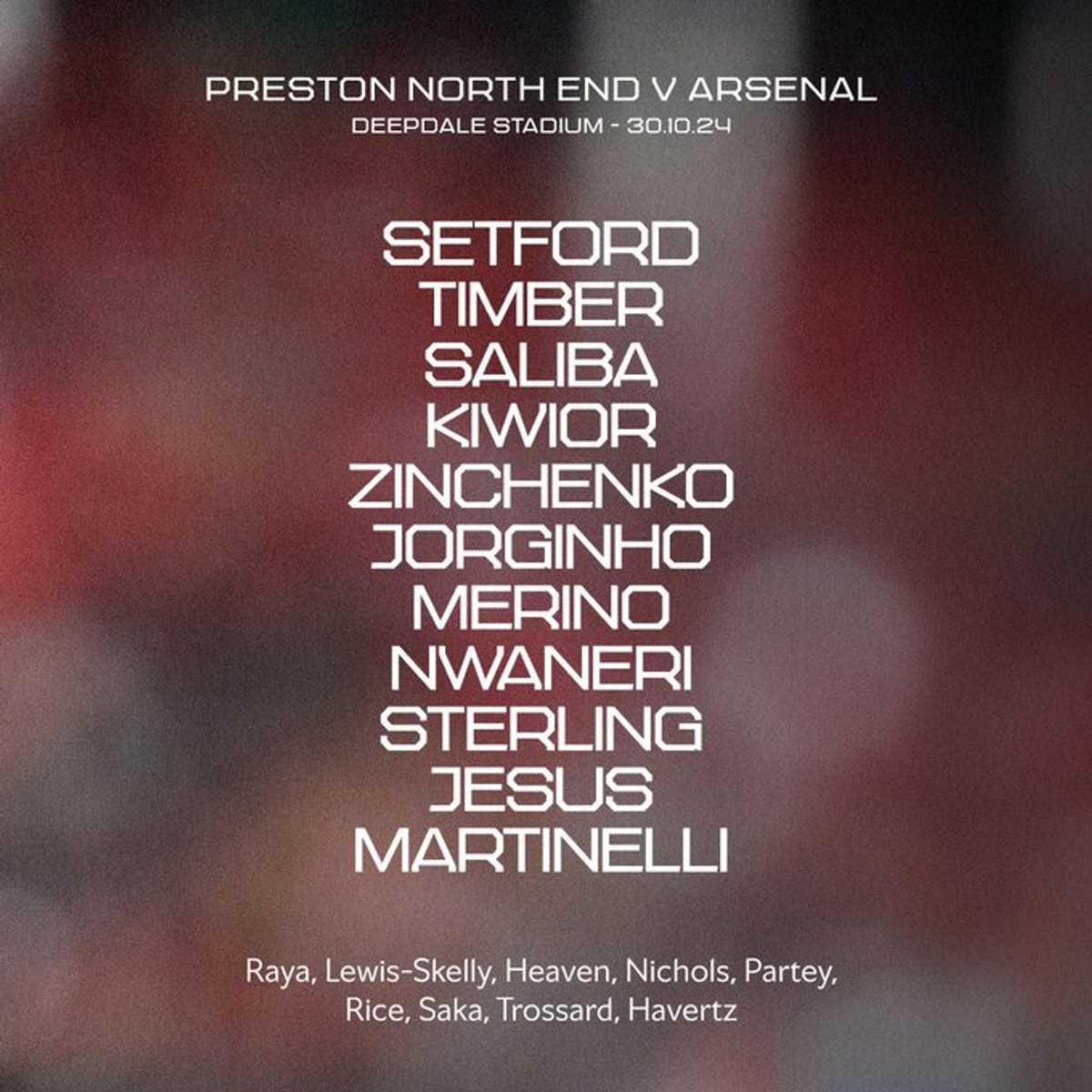 Арсенал: Cетфорд, Тімбер, Саліба, Ківьор, Зінченко, Нванері, Жоржиньйо, Меріно, Стерлінг, Жезус, Марітнеллі