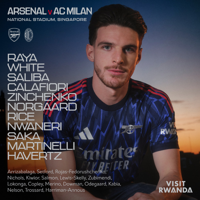 Склад Арсенала: Райя, Вайт, Саліба, Калафіорі, Зінченко, Ньоргор, Райс, Нванері, Сака, Мартінеллі, Гаверц