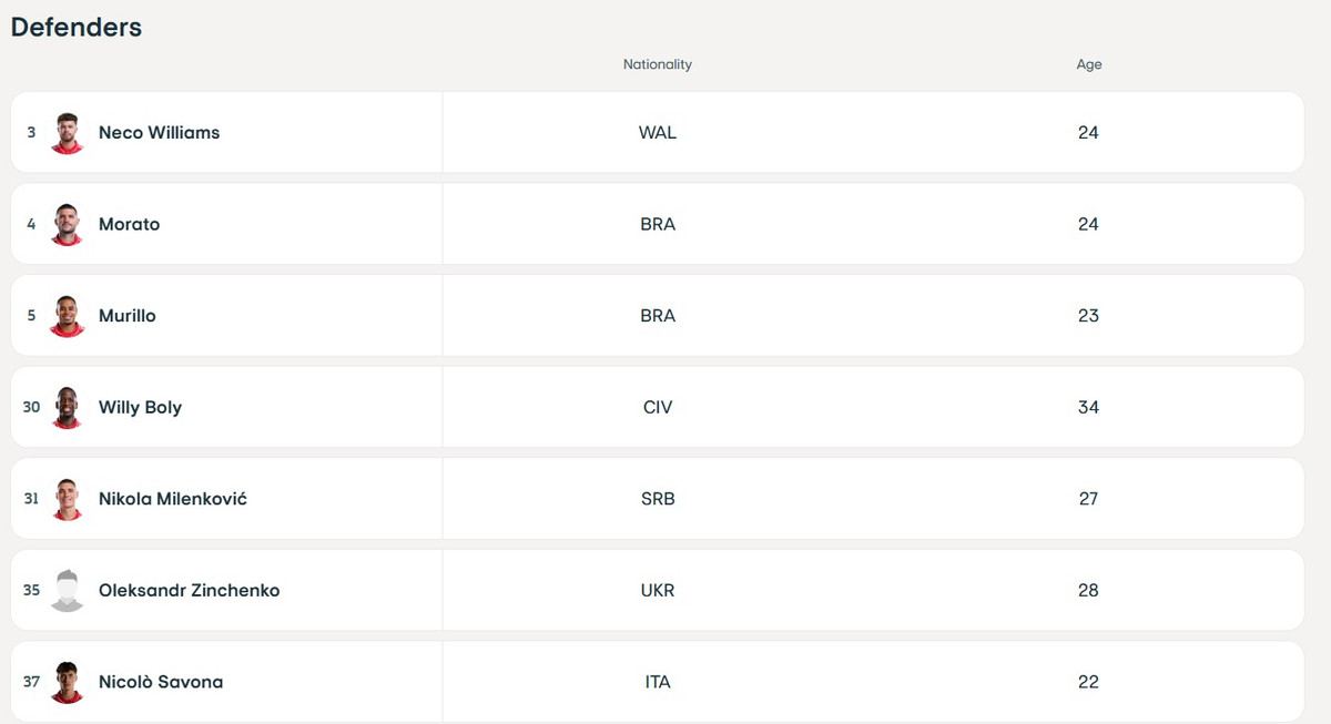 Ім’я українського захисника Олександра Зінченка з’явилося у заявці Ноттінгем Форест на груповий етап Ліги Європи сезону-2025/26.
