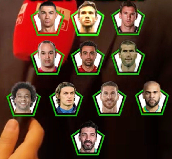 У воротах – Джанлуїджі Буффон, а оборону Зінченко довірив зірковому квартету: Дані Алвеш, Серхіо Рамос, Паоло Мальдіні та Марсело. Центр поля просто сяє легендарними іменами – Хаві, Іньєста та Зінедін Зідан, а в атаці справжній вибух класу: Ліонель Мессі, Кріштіану Роналду та Андрій Шевченко.