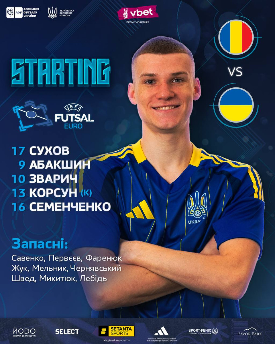 Головний тренер збірної України Олександр Косенко визначився зі стартовим складом на другий матч кваліфікації Євро-2026 з футзалу проти Румунії.